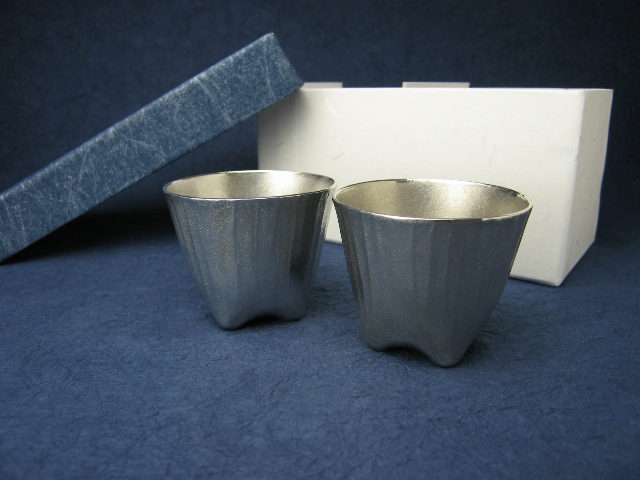 ギフト・プレゼント・贈り物に粋で珍しい、ペアの錫製ぐいのみ。