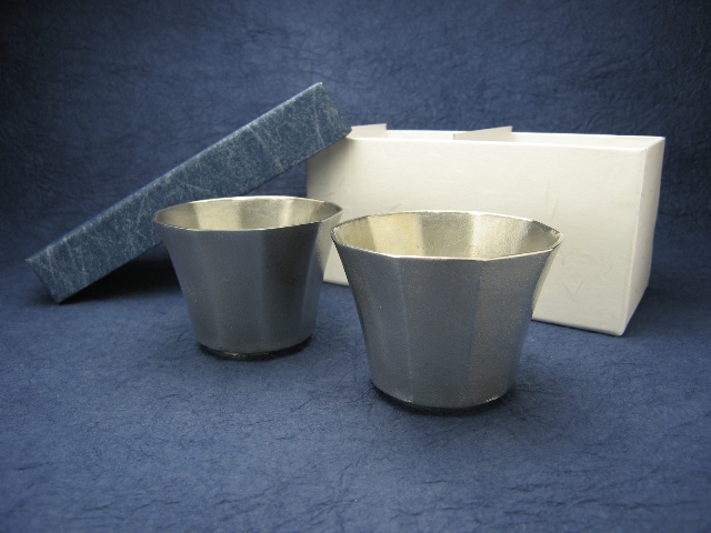 錫酒器 錫ぐい呑み 【たっぷり入るツヤ消しの十角 ペアぐい呑み】作家「小泉均」