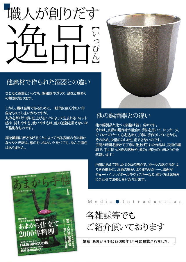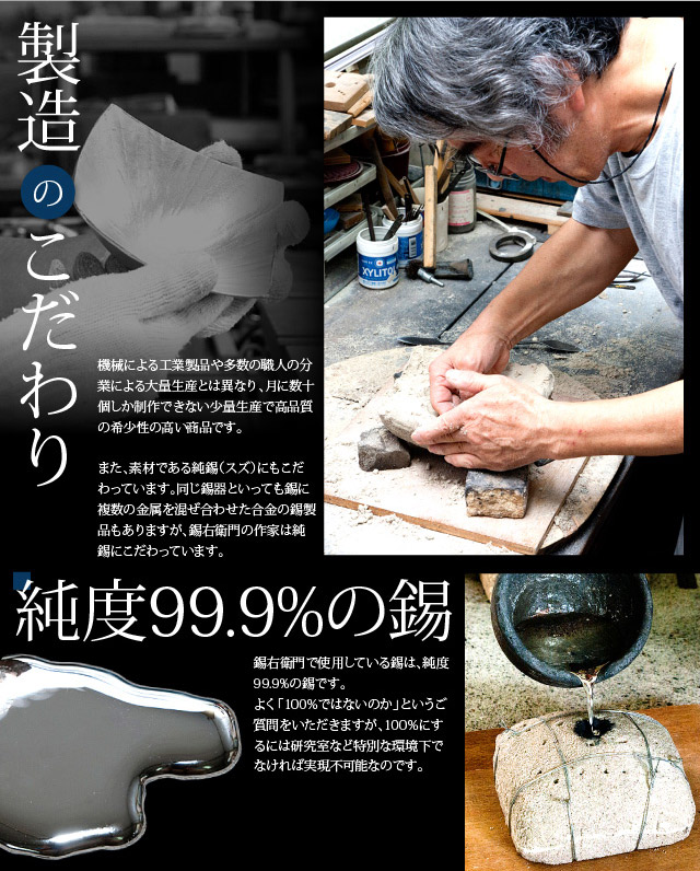 それでもご納得いただけない場合は、速やかにご返金させていただきます。錫器を満足してお使いいただくための当店のこだわりです。安心して当店をご利用ください。