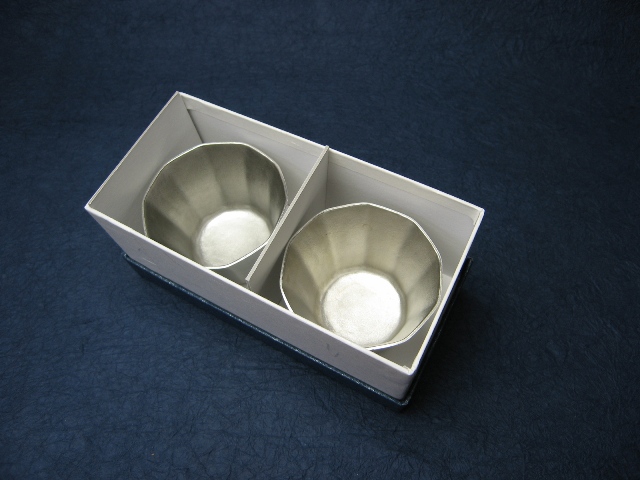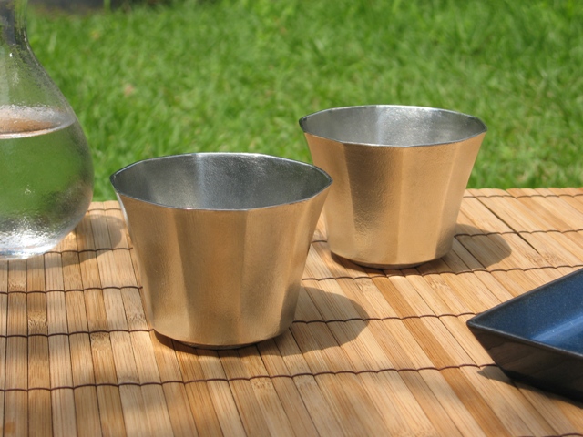 錫酒器 錫ぐい呑み 【たっぷり入るツヤ消しの十角 ペアぐい呑み】作家「小泉均」
